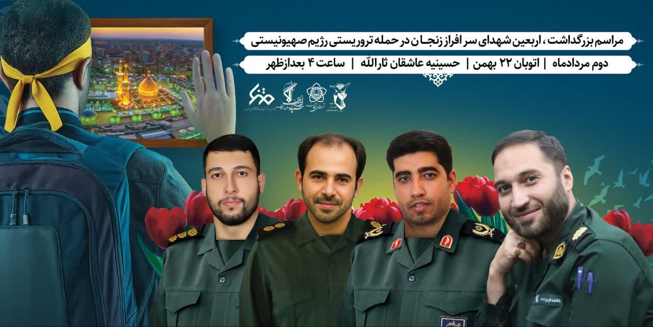 مراسم بزرگ داشت ، اربعین شهدای سر افراز زنجان در حمله تروریستی رژیم صهیونیستی