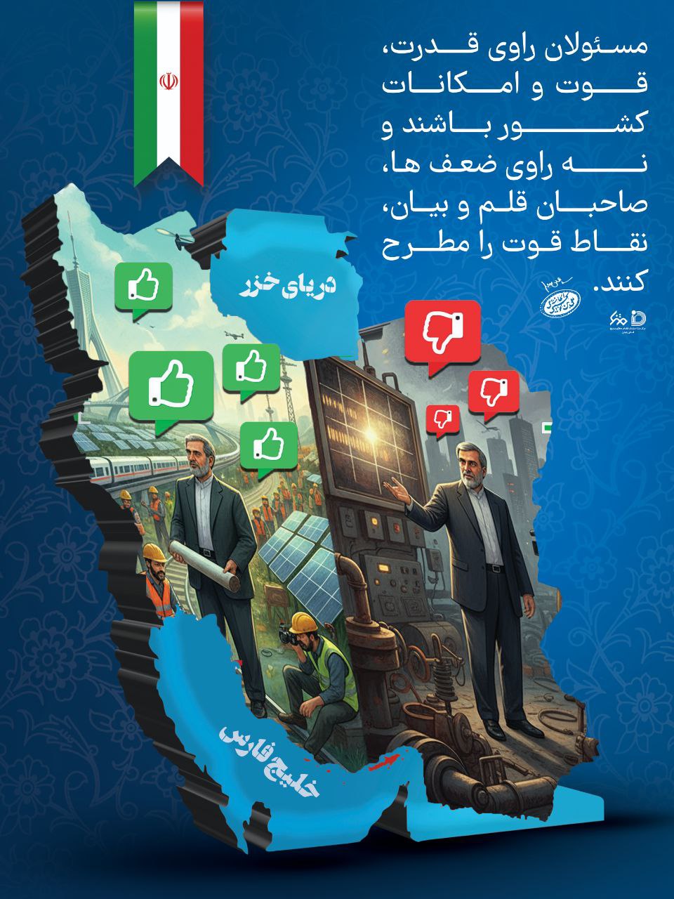 💢 مسئولان راوی قدرت و قوت و امکانات کشور باشند و نه راوی ضعف ها، صاحبان قلم و بیان، نقاط قوت را مطرح کنند.