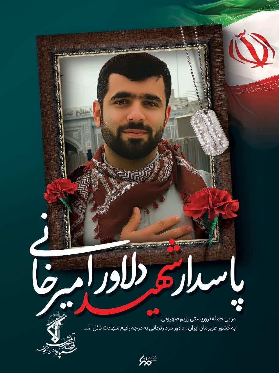 در پی حمله تروریستی رژیم صهیونی در آستانه عید غدیر خم ،به کشور عزیزمان ایران ، دلاور مرد زنجانی ، دلاور امیرخانی به درجه رفیع شهادت نائل آمده و به مولایمان امیرالمؤمنین علی (علیه السلام) پیوستند .
